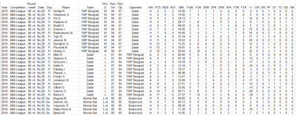 ABA League season 2019/20 round 9 players statistics