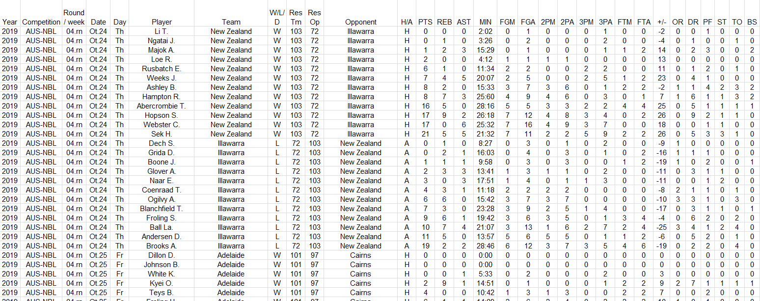 NBL Australia season 2019/20 4. week players statistics