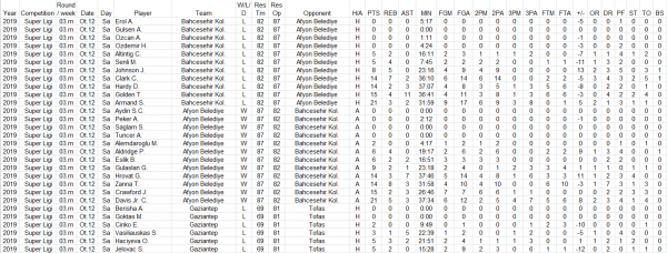 Super Ligi(Turkey) season 2019/20 round 3 players statistics